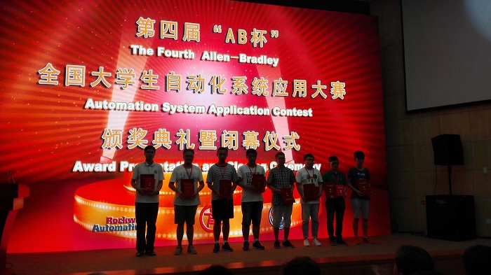 “AB杯”全国大学生自动化系统应用大赛是由教育部高等学校自动化类专业教学指导委员会主办的自动化应用领域的创新型竞赛,本届大赛由罗克韦尔自动化(中国)有限公司,上海交通大学,中国人工智能学会智能检测与运动控制技术专委会共同承办。大赛以罗克韦尔自动化公司旗下Micro850控制系统为核心平台,紧密围绕工业控制网络技术,由实际动手操作和自主创新作品两部分组成。实际动手操作结合上海交通大学罗克韦尔自动化实验室先进的被控对象,采用现场命题方式进行,要求队员在指定时间内完成基于Micro850平台的相关工程项目,以被控对象规定动作的精度、速度等完成效果为评判标准进行集中评审。自主创新作品由参赛学生围绕Micro850控制平台,自主选定应用问题,提供完整设计方案和控制效果分析,决赛现场向专家组进行口头报告并接受专家质询和现场打分评价。