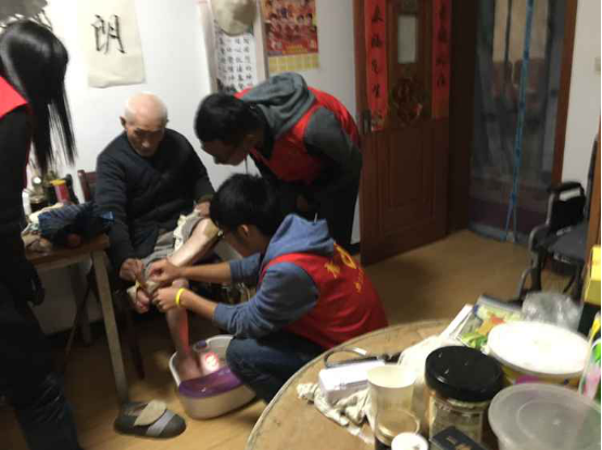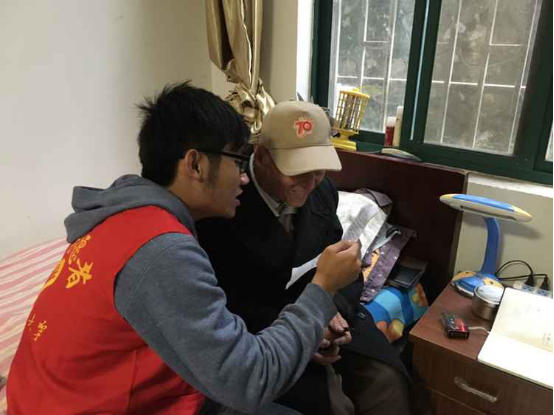 11月7日下午,寒潮来袭,南工青协朗读者小分队的志愿者冒着风雨来到向阳敬老院,看望敬老院里的三位老兵。手里揣着面向全校征集的给老兵的信件,希望能够把热乎乎的关爱传递给老兵,让这一天不再寒冷。志愿者来到敬老院后,先与老兵进行了日常的聊天,交流一下生活上的事情。岁月让这些老人变得无比憔悴,每年的冬天也是他们最难熬的时间,但还是希望我们每周的陪伴让他们的这个冬天过得更加安心和温馨。进行过简单交流之后,志愿者拿出了准备好的信件,凑在老兵的耳边,给他们念出了南工同学想对他们说的话。“遗忘历史等于背叛,我们从未忘记沾染着痛苦与鲜血的历史,更没有忘记在生死时刻挺身而出,为国奋战的你们。”志愿者字正腔圆,雄壮有力的朗读让老兵们纷纷点头表示赞同,感慨万千。石永固老兵拉着志愿者的手说道:“未来是你们年轻人的,你们有这样的觉悟很难得,很好!”
