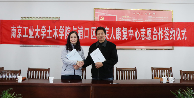 最后,双方签署了《新利18彩票 土木工程学院与浦口区残疾人康复中心关于共建青年志愿者服务基地协议书》。