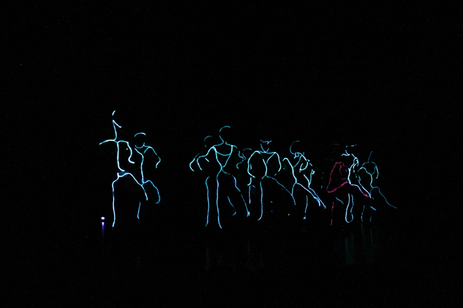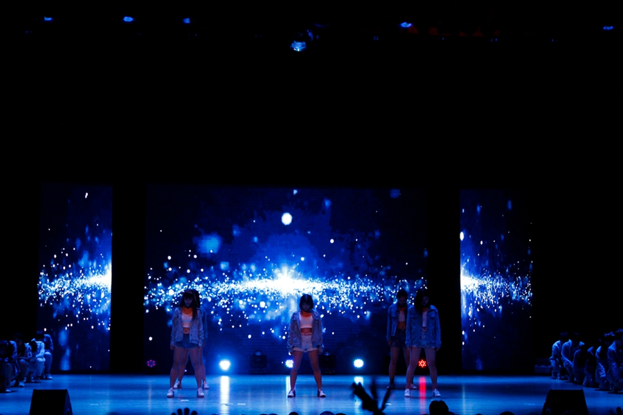 接下来,由机械学院研究生带来的魔术《梦的权杖》让人惊喜连连,小小的盒中竟能变出这么多东西,着实惊艳。欢快的舞龙舞狮《藏龙卧虎》与优雅的古风舞蹈《恋人心》则一度将晚会气氛推至高潮,由环境学院水质1601班全体同学表演的诗朗诵《破茧成蝶》展现了同学们青春昂扬的精神风貌以及对大学生活的憧憬与热情,现场气氛火热。最具创意与特色的当属环境学院新生代表表演的荧光舞《光电空间》,动感十足,创意满分,为晚会注入一股新的活力。