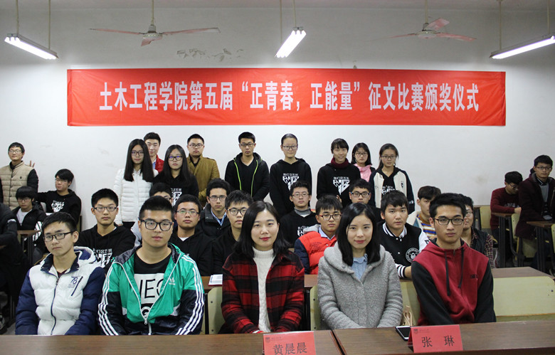 12月2日下午3时30分,土木工程学院第五届“正青春,正能量”颁奖仪式在仁智107举行。土木工程学院分团委书记张琳,分团委副书记黄晨晨,16级各班班委,获奖学生及班级出席颁奖仪式。