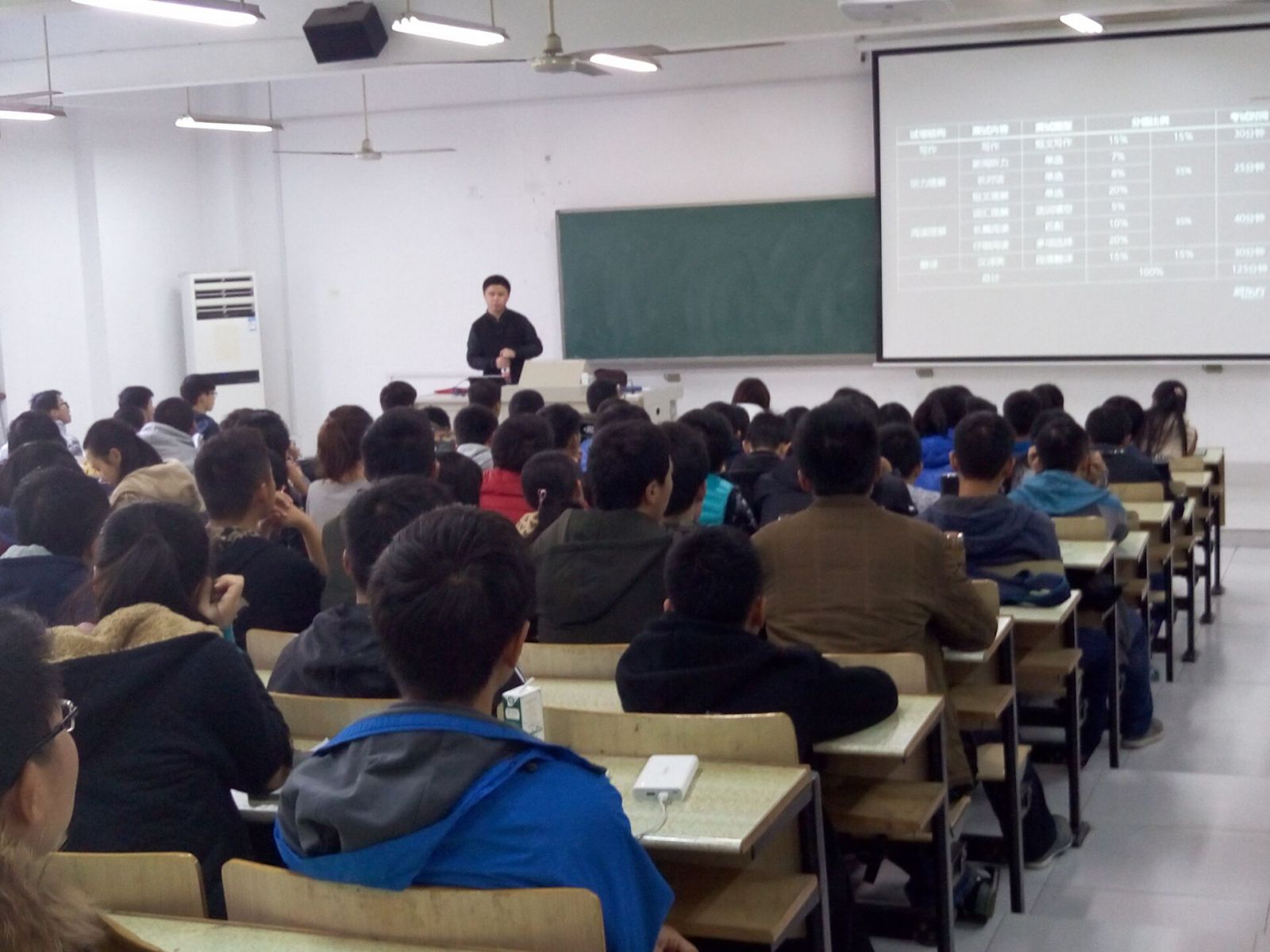 为了更好的备战英语四级,掌握听力技巧,克服四级听力困难,安全学院2016级全体新生于仁智301教室参加了由新东方英语学校马迅老师主讲的“四级听力技巧培训”公开课。