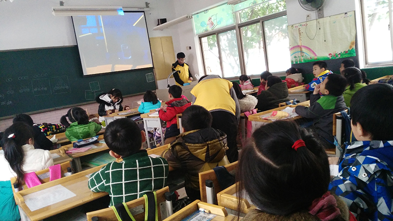 下午一点,志愿者们在校门口集合,并一同乘坐公交车前往察哈尔小学。下午两点半,在与老师沟通后,志愿者们就正式开始了本次支教活动。首先,志愿者们向小学生展示了预先准备好的ppt并给他们科普了一些心理方面的知识。接着,志愿者们和小学生们玩起了心理游戏。总体来说,此次爱心支教取得了很大的效果。在上课的过程中,志愿者们还与同学们一起做了“听命令做动作”和“你做我猜”等小游戏,小学生们表现出极大的兴趣与好奇心并积极主动的举手参与,争着回答问题,课堂气氛非常活跃。同时,成员们也不禁对小学生们单纯、可爱、充满好奇心等品质而触动,并对表现积极的同学进行糖果奖励。下午3点整,随着小学老师走进课堂,活动圆满的结束了。依依不舍之情浮现在学生们和志愿者们的脸上,志愿者们纷纷表示此次活动颇有意义,小学生们可爱的脸庞铭记在每一个人的心中。活动结束后,大家一起在小学门口附近合照留念。
