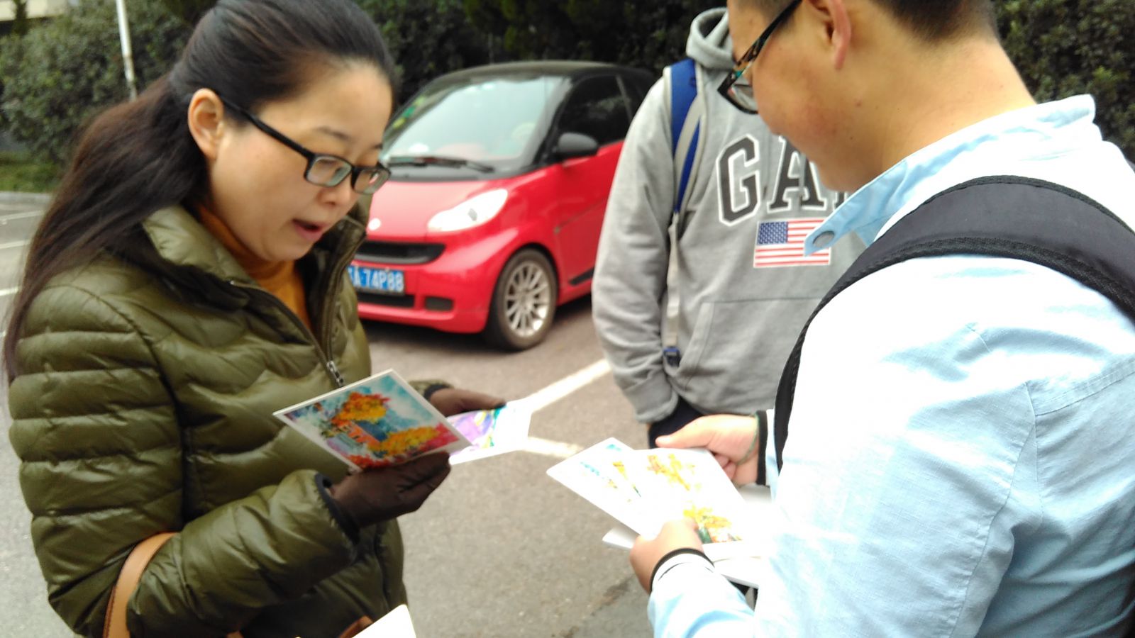 早上八点半,参加活动的所有成员在沉毅广场集合,然后各个团队到各自选好的场地着手准备明信片销售活动。接着,每组组长带领团队商议销售方案、去南审的方式以及时间规划等。社团成员经历了他人不予理睬、委婉拒绝等多种情况,但大家都没有气馁,鼓起勇气,勇敢尝试,通过更换销售地点以及调整销售语气等多种方法,成功积累了销售经验。在组长的带领、指导员的提点下,三组参赛选手均成功完成销售任务。最后,社团成员利用销售所得金额在南审聚餐并总结交流销售过程中遇到的问题与解决方法。下午一点,活动圆满结束。