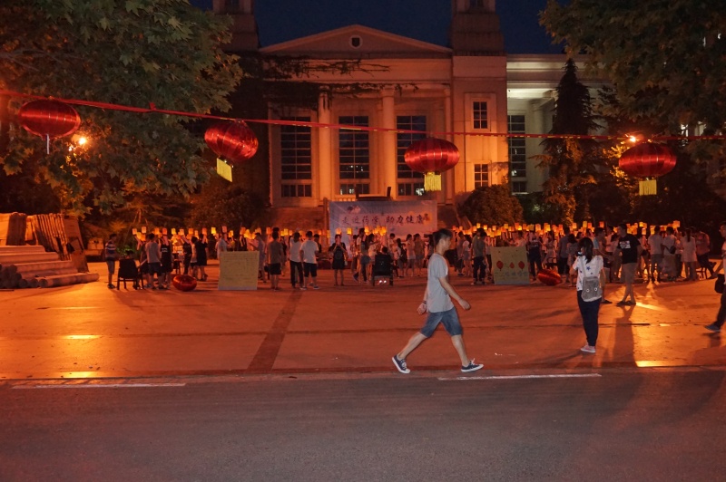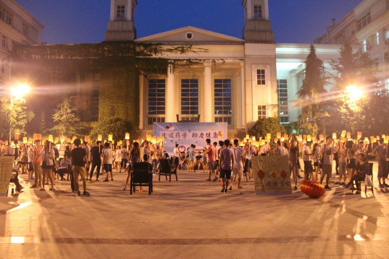 在下午的药学开放周启动仪式活动结束后,灯谜晚会随后拉开序幕。沉毅广场外高高挂起了数个大红灯笼,活动现场内悬挂了上百个小灯笼,每个灯笼下有一个灯谜。同学们走入灯谜区域,看灯答题,谜面涉及医药、健康、成语、动植物、中草药等题材,激起了参与者强烈的答题兴趣。首先由参与者自由走动答题,每答一道题,就将悬挂的灯谜撕下,若答对则去各个区域的负责人那盖一枚印章。广场上,同学们三三两两,聚在一起,或低头沉思,或热烈讨论,尽力解答灯谜。在他们展现个人智慧的同时,增进了对中国传统文化的认识,也提高大家对医药与健康的基本认识。天渐渐暗下来之时,灯笼内的灯逐渐亮起,参与的路人也越来越多,将整个晚会推向高潮。经过了两个半小时的激烈答题,同学们积累的印章也越来越多,并根据印章的数量换取了相应的奖品。晚会结束后,学生会全体工作人员不辞劳苦,及时将活动现场清理干净,保证第二天沉毅广场正常使用。