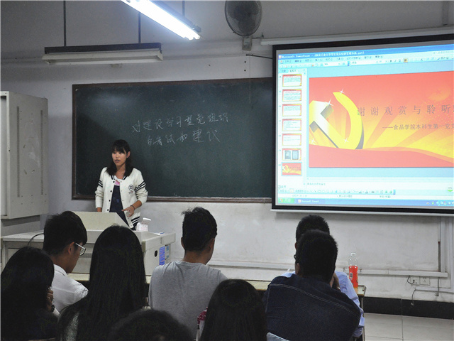 10月18日晚6:00,食品学院第二十六期学生入党积极分子培训班实践教育在厚学和浦江教学楼各教室准时开始。本次实践教育由本科生第一党支部各组党员讲解《学生党员目标管理办法》和《学生党员纪律管理办法》,并安排相关实践活动。