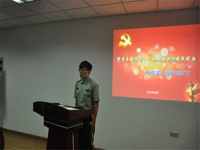 此次活动由两个小组分别围绕“少数民族文化”和“抗战胜利70周年阅兵”两个主题展开讨论和学习。第一小组成员郑展霞和蔡银莲同志生动地介绍了三个少数民族的图腾以及民俗风情,让全体成员从深处了解到了少数民族文化艺术多姿多彩、风俗习惯各具特色、民族节日种类繁多,随后还播放了苗族风情纪录片《苗山恋》,让全体成员更加体会到了苗家达佩(姑娘)、达亨(小伙子)恋爱时独特的“走妹”风俗,待客中必不可少的“打油茶”习俗、敬酒礼仪、“苗不离酸”的饮食传统以及苗族姑娘出嫁的婚俗,纪录片中最后的打同年、芒歌节、闹鱼等系列苗族坡会的热闹场景,也给全体成员带来了一场视觉上的盛宴;第二小组成员穆昊、王俊雅和曹丁丁同志分别从抗战胜利时期、历年阅兵、93阅兵三方面讲述,彰显了我国的强大、军人的强悍、科技的不断进步,同时也表达了我党爱好和平的愿望。讨论期间柴佳超、赵一帆等同志对“安倍不满潘基文出席93阅兵”提出了个人见解,指出安倍违背了历史,应该对此做出反省。会议最后,刘昀同志做出了总结,指出我们党员应该为中国日益繁荣昌盛感到自豪,铭记历史,开创未来!