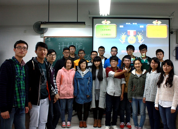 为加强学风建设,丰富课余生活,在全院范围内形成勤于思考、善于思辨的18新利客户端下载 氛围,展现当代大学生的风采,计算机科学与技术学院于11月7日18:30在厚学210举办了新生杯辩论赛的初赛,并邀请院辩论队队长马楠、学生会主席孙语泽、分团委宣传部部长武琪担任评委。