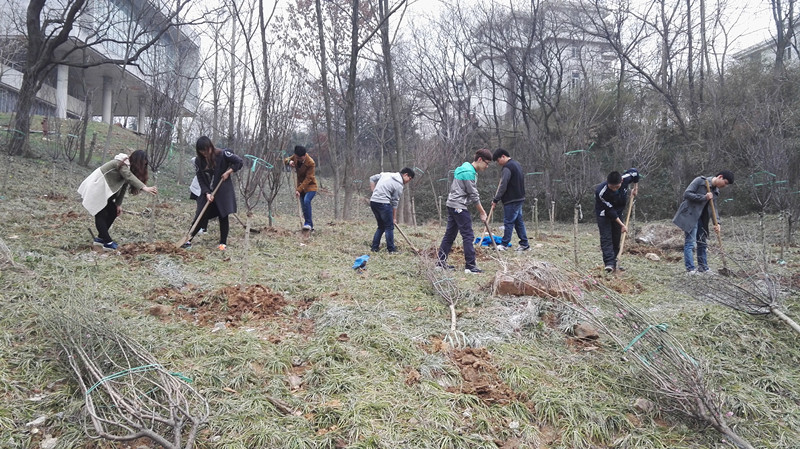 春回大地,万物复苏,在3月12日植树节到来之际,计算机科学与技术学院学生党支部在逸夫图书馆旁开展了“信息之星—梅花林”植树活动。