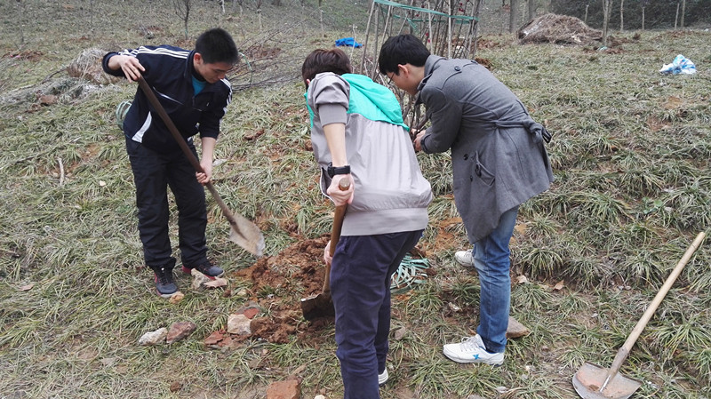 活动当天,雨过天晴,阳光明媚,下午4时许,我院学生党支部党员带着由校友捐赠的树苗和工具准时集合。他们激情澎湃,马上便加入了植树的行列之中。经过两个多小时的忙碌,一排排新生的树苗迎风林立,生机勃勃,梅花林初见雏形。两小时的劳动虽然辛苦,但每一位党员的脸上都洋溢着喜悦的笑容。看着亲手种下的树苗,他们不禁感慨万千,纷纷表示以后每年植树节都会亲手种下几颗小树。