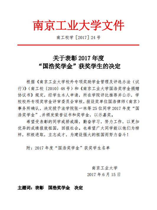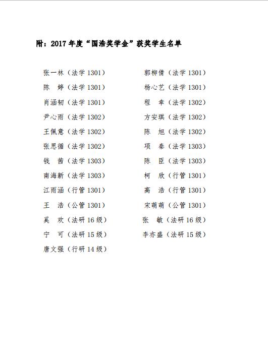 【学校发文】 关于表彰2017年度“国浩奖学金”获奖学生的决定