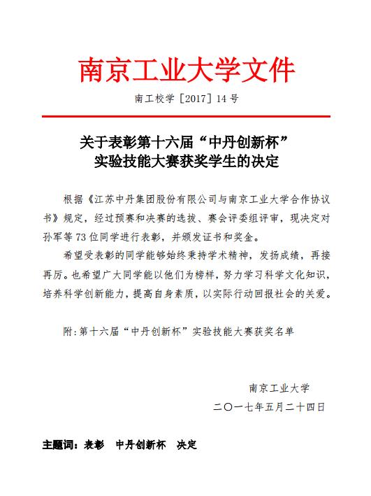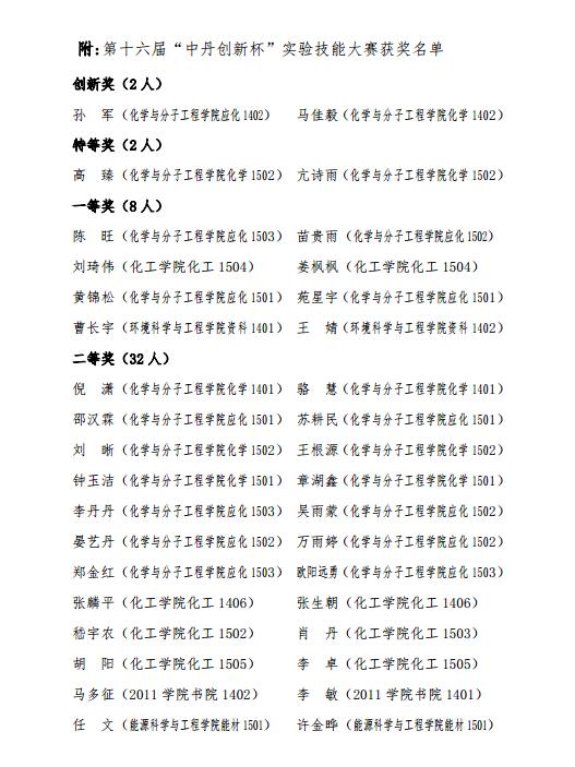 【学校发文】 关于表彰第十六届“中丹创新杯”实验技能大赛获奖学生的决定